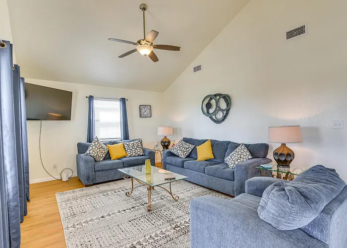 **Welcome to Walk To Beach Gulf-View Home In Surfside Beach!** Nestled in a coastal paradise, this exquisite retreat is designed for guests seeking relaxation and a taste of beachside charm. With its breathtaking views of the Gulf, you can unwind while taking in the beautiful sunrises right from your balcony. Situated just 100 km from the bustling William P. Hobby, this home perfectly blends convenience and seclusion.